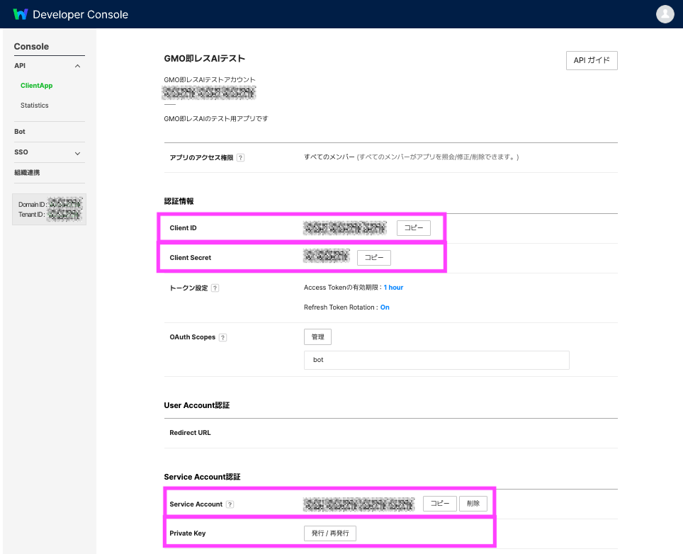 ※この2つの情報は後ほどGMO即レスAIの管理画面で利用します。