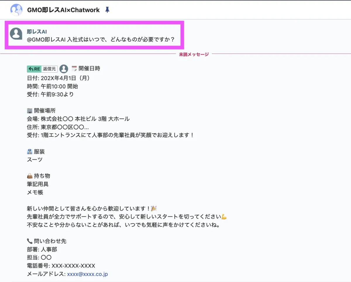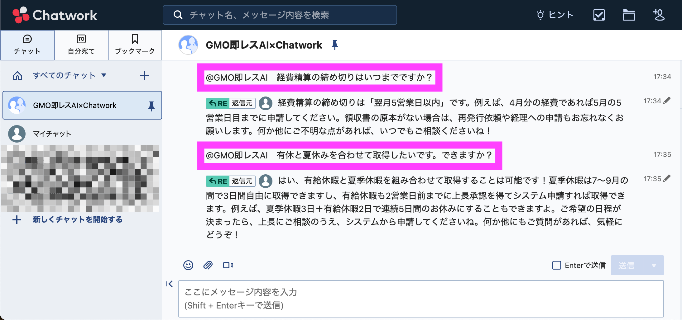 1.Chatwork上でGMO即レスAIが動作するか確認