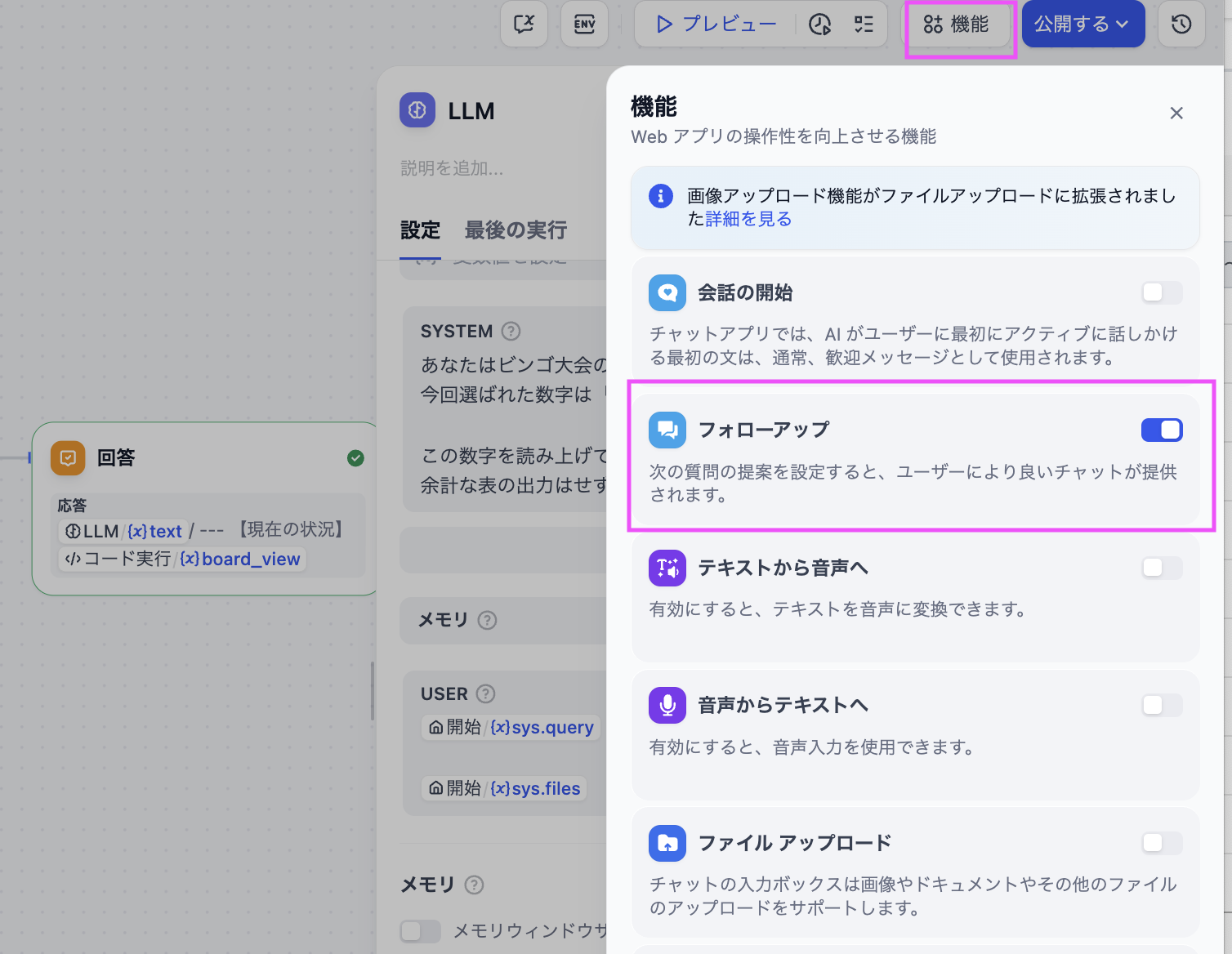 この記事の通りにDifyを設定するだけで、PCを優秀なビンゴ司会者にすることができます。